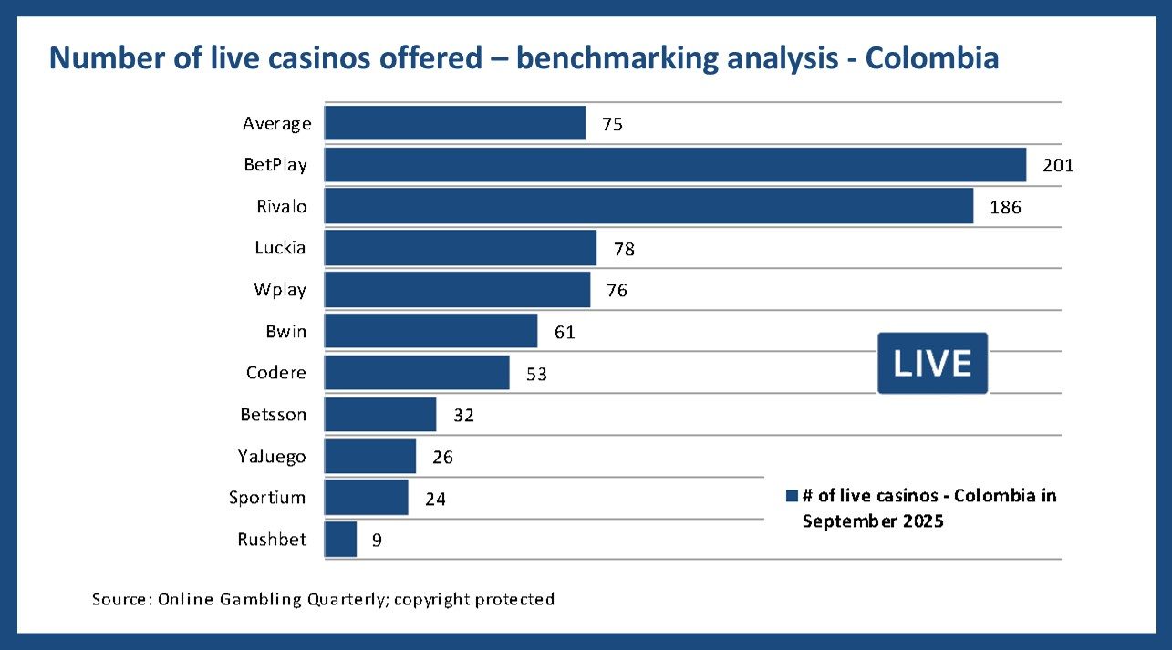 Number of live casinos offered – benchmarking analysis – Colombia, Q3 2025
