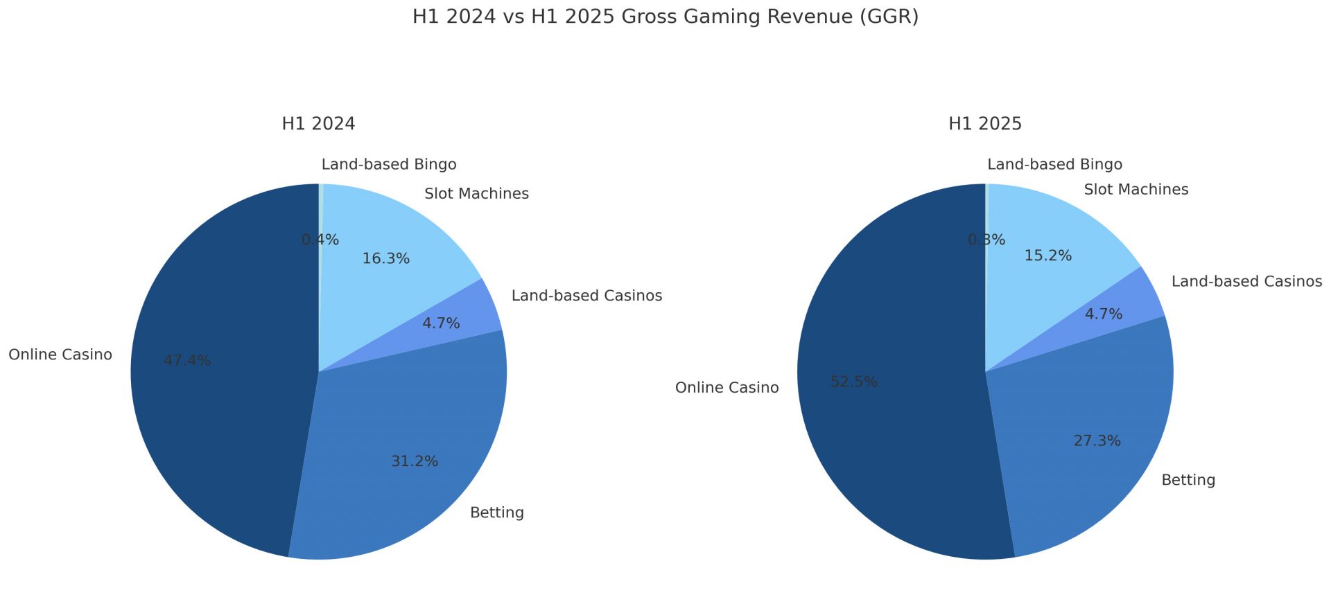 Total gross gambling revenue stood at DKK 3.796bn between January and June 2025 (H1 2024: 3.635bn). Online casino was the largest contributor.