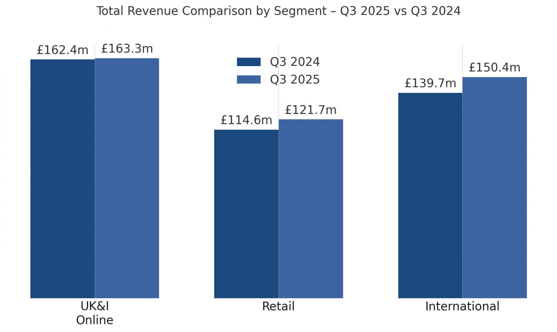 Evoke Q3 2025 results mark another solid quarter for the group, with revenue up 5% year-on-year to GBP 435m (ca. EUR 495m). It’s the fifth straight quarter of growth, supported by gains across its UK, international, and retail businesses. The company also reaffirmed its full-year Adjusted EBITDA margin guidance of at least 20%.