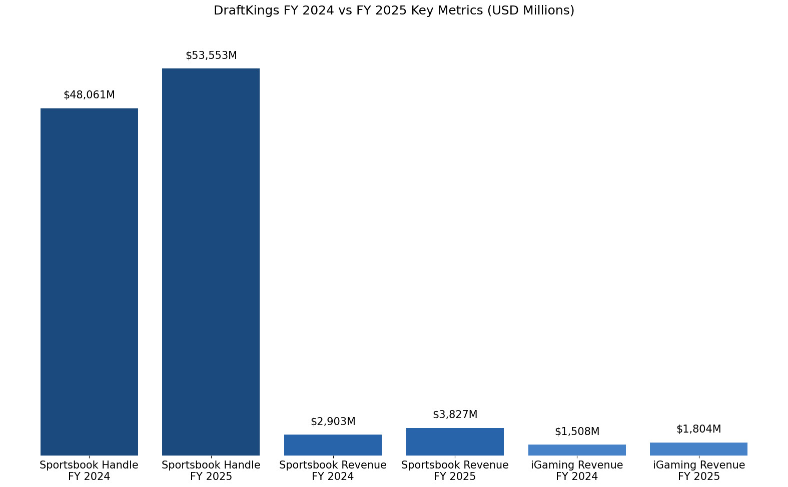 Across 2025, each quarter showed higher handle than the prior year. Revenue followed the same pattern, reflecting stronger staking volumes. This steady sportsbook growth was central to the DraftKings FY2025 results.