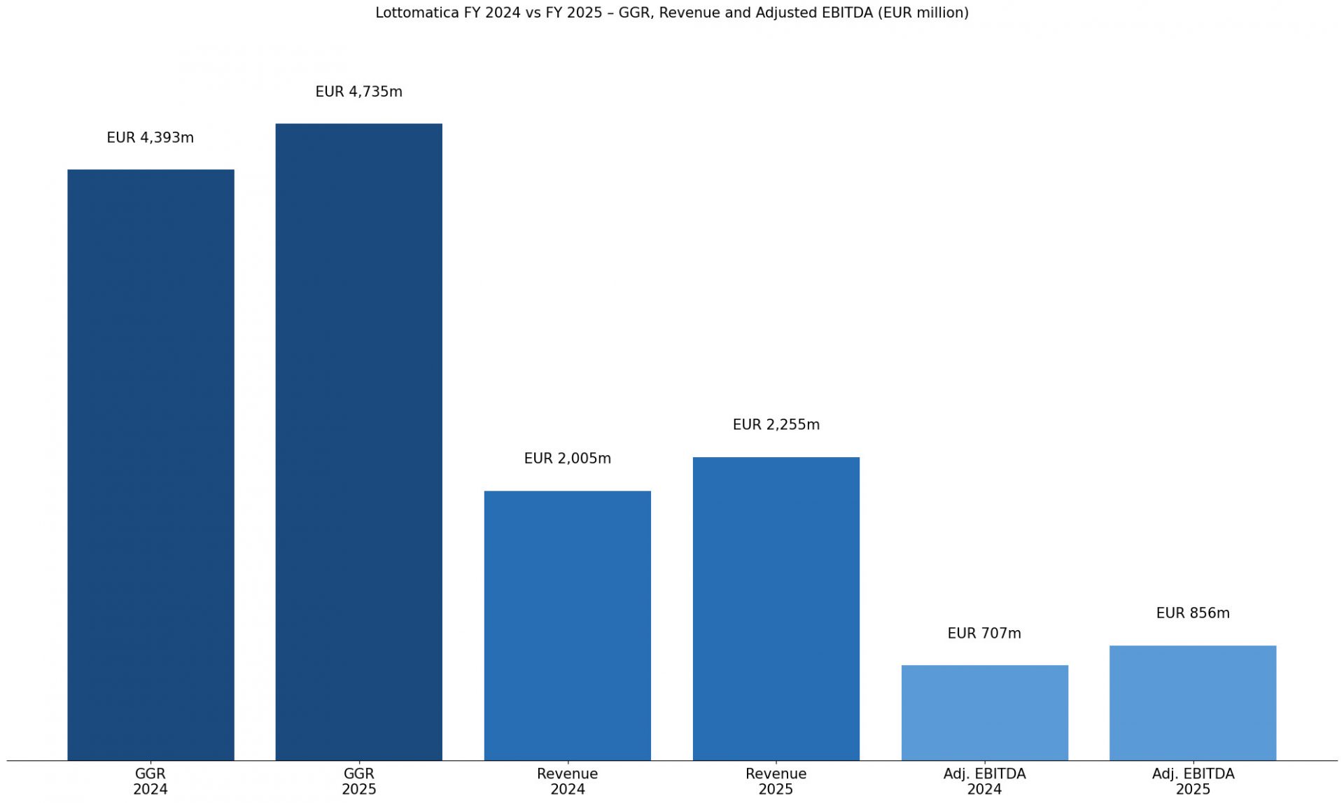 Adjusted net profit rose 45% to EUR 369m, reflecting stronger operating performance. Operating cash flow reached EUR 657m, supported by higher EBITDA. The Lottomatica FY 2025 results also show stable leverage at 2.4x run-rate EBITDA at year-end.
