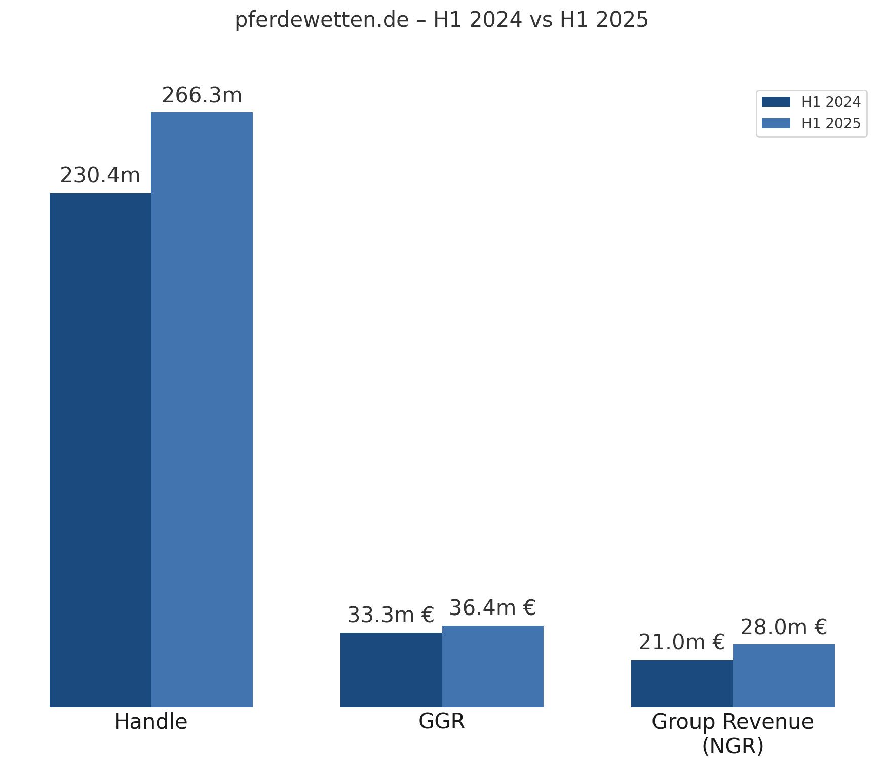 • Handle in H1 2025 reached 266.3m (H1 2024: 230.4m) while Gross Gaming Revenue (GGR) hit €36.4m, up 9% year on year.