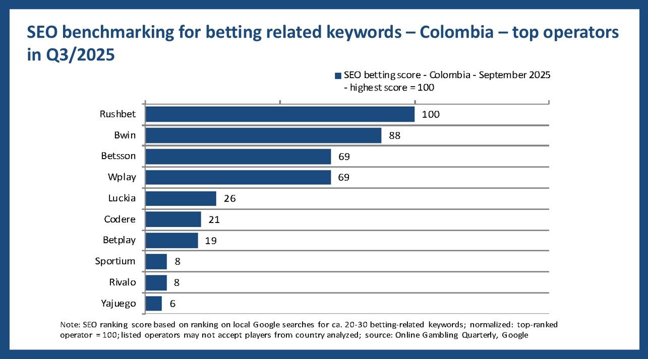 SEO benchmarking for betting-related keywords – Colombia – top operators in Q3/2025