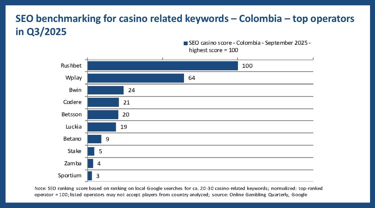 SEO benchmarking for casino-related keywords – Colombia – top operators in Q3/2025