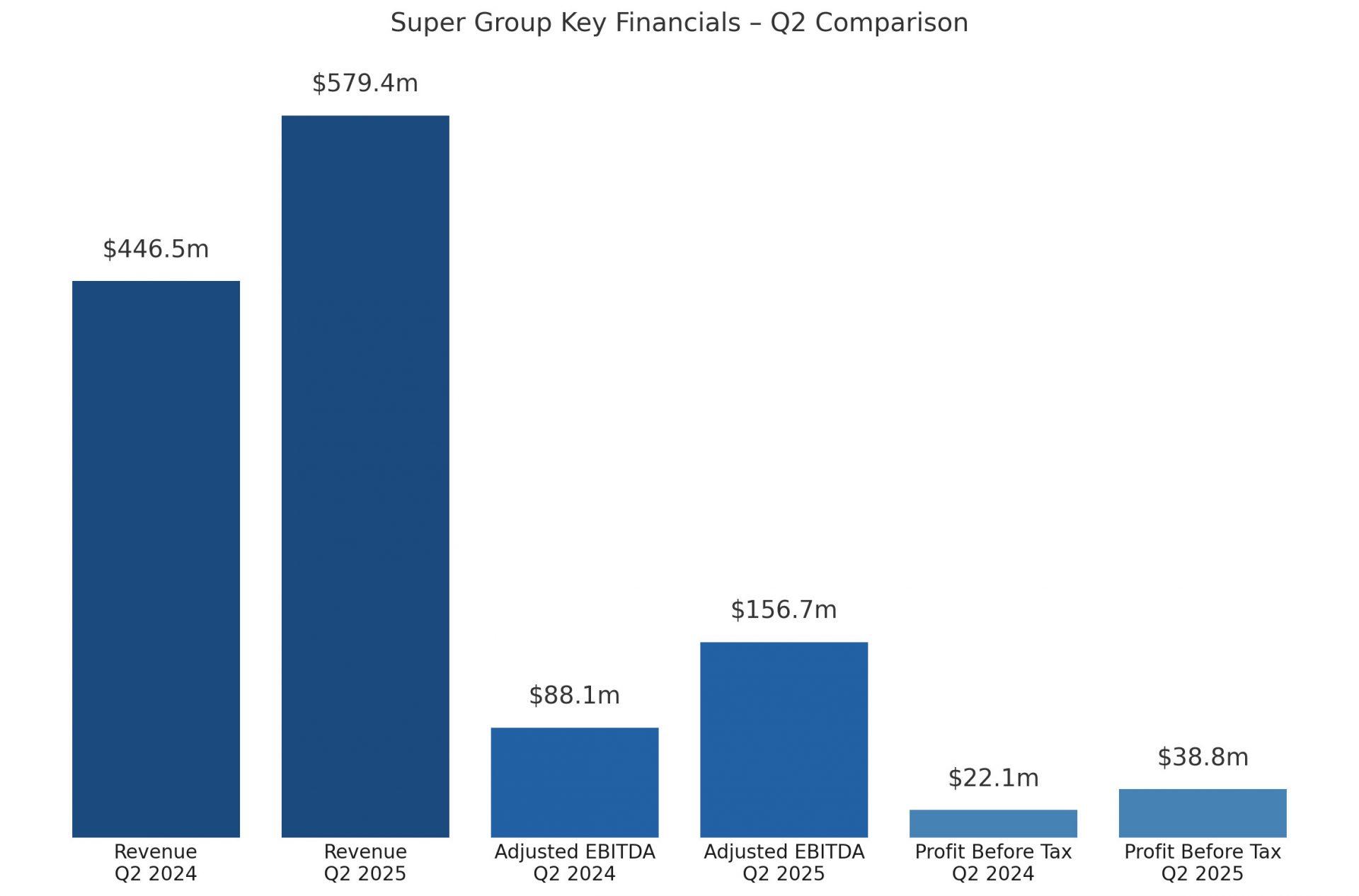 Super Group earnings hit $579.4m in Q2 2025, up 30% from $446.5m a year ago. Growth was driven by the Africa, Europe, and North America regions. LATAM and Asia-Pacific saw minor declines.