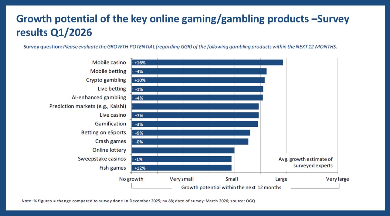 Growth potential of the key online gaming/gambling products – Survey results Q1/2026
